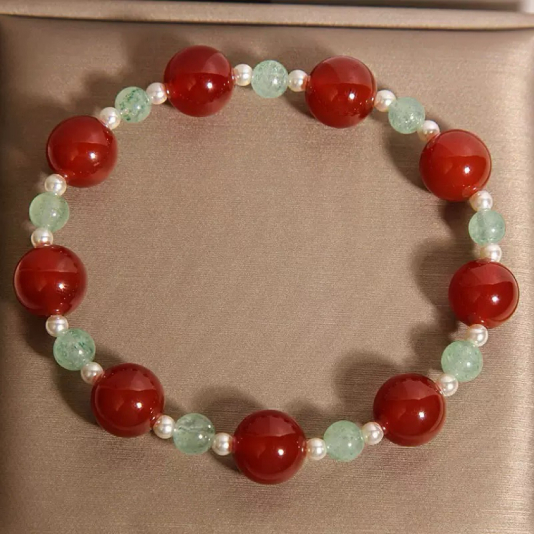 Bracelet Agate Rouge et Quartz Fraise Vert – Éclat Vital