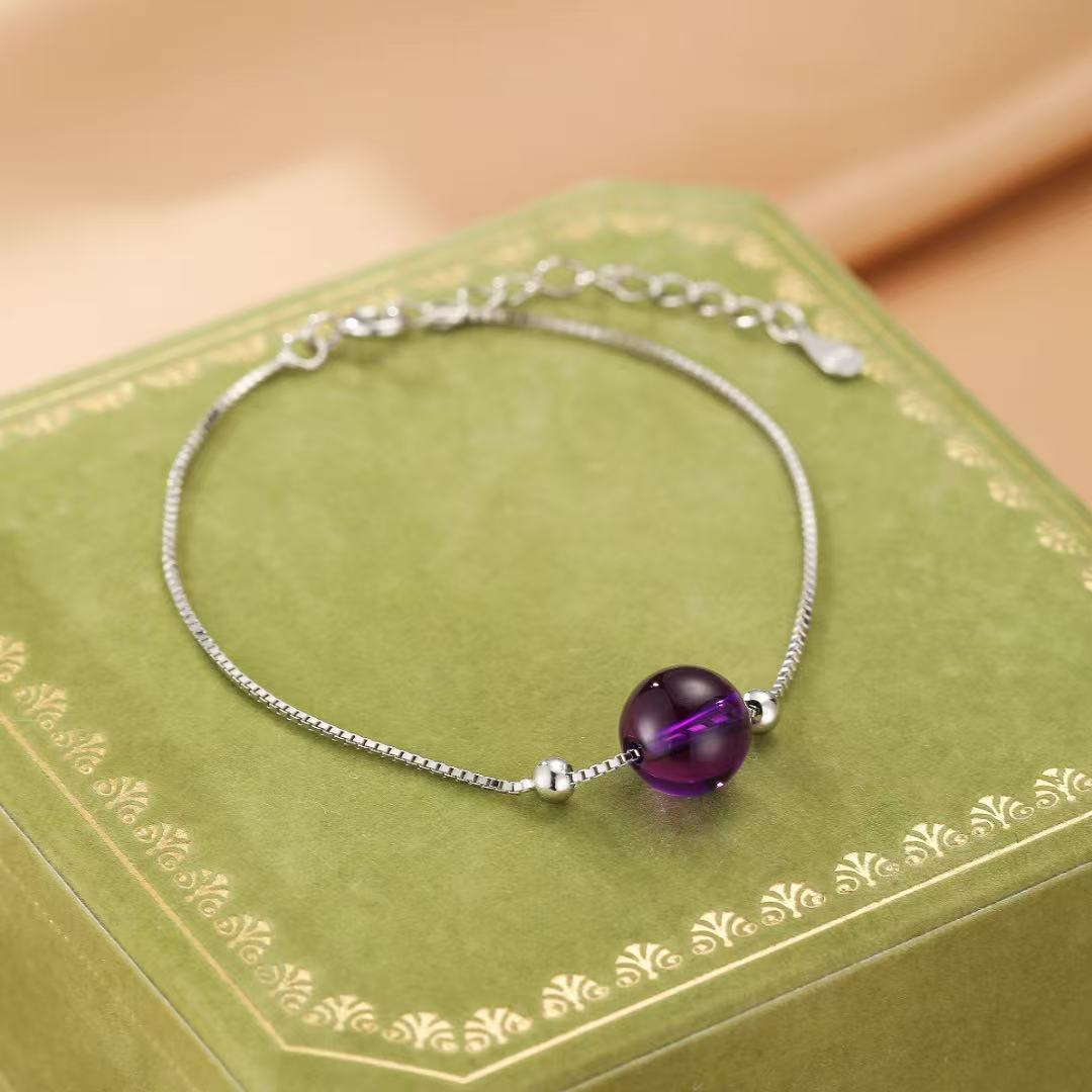 🌸 Apportez une touche de poésie à votre quotidien avec ce bracelet en améthyste naturelle. Sa silhouette fine et délicate met en valeur une perle violette lumineuse de 8 mm, montée sur une chaîne en argent 925. L’ajout d’une petite perle argentée (2 mm) apporte un bel équilibre au design, tout en conservant une allure minimaliste.