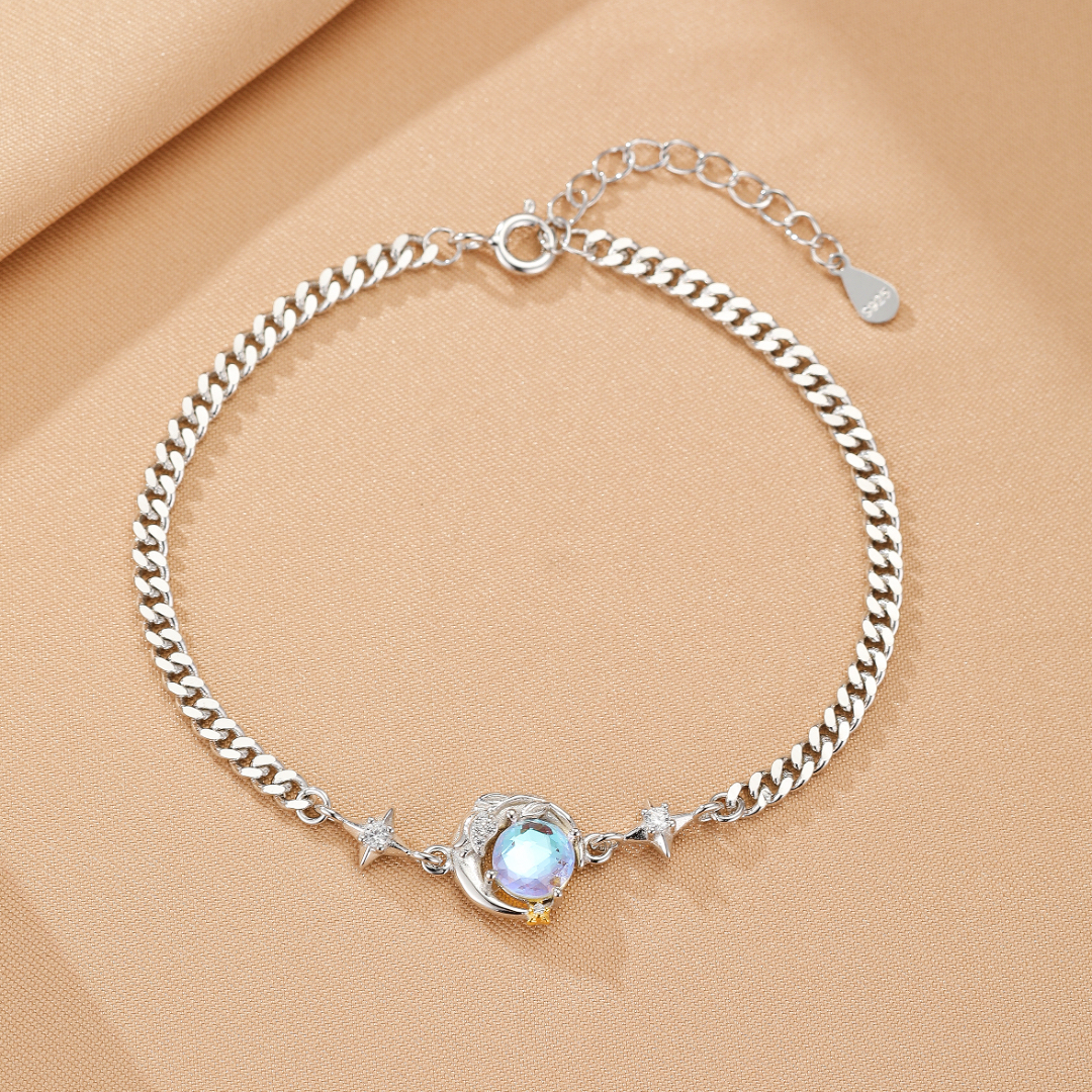 🌙 Laissez parler la poésie de votre lien avec ce duo de bracelets assortis en argent 925, inspiré du Petit Prince. Lui porte un croissant de lune élégant aux reflets sombres, surmonté d’une étoile dorée. Elle porte une rose stylisée aux reflets irisés, comme une lumière précieuse au creux du poignet.