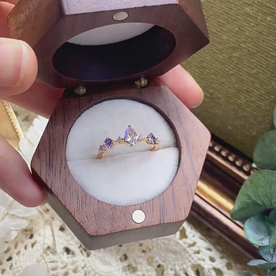 ✨ Bague Pierre de Lune – Cascade Lumineuse, Argent Plaqué Or, une bague qui marie élégance et mysticisme. Conçue avec de la pierre de lune, de la tanzanite et du zircon, cette pièce évoque la sérénité et la beauté céleste.