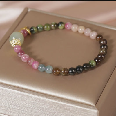 🌈 Découvrez notre Bracelet Tourmaline – Sagesse d’Éléphant, un joyau où la beauté naturelle rencontre le symbole spirituel. Chaque perle de tourmaline multicolore scintille de nuances uniques, représentant la diversité de la vie et l’équilibre énergétique.